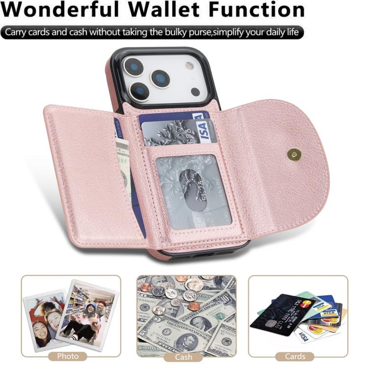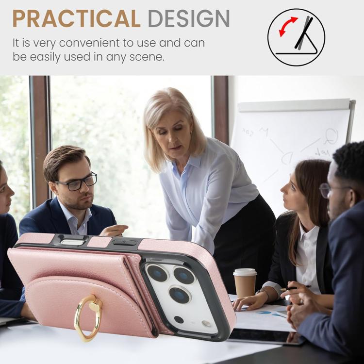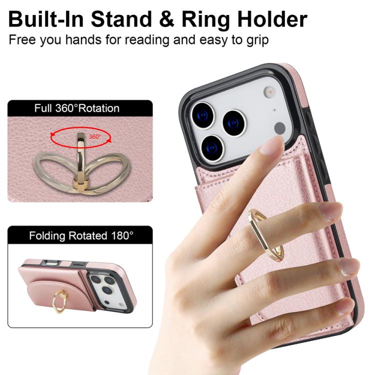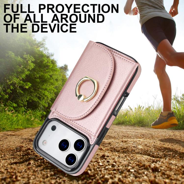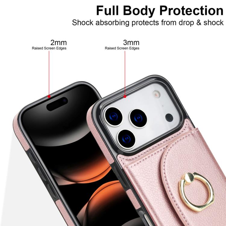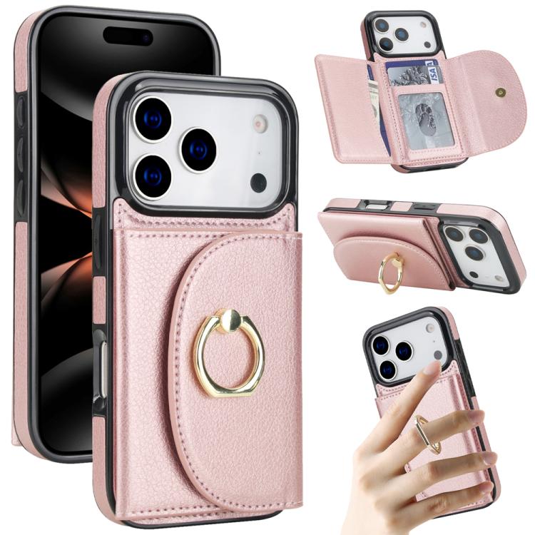 Funda con tarjetero y anillo para iPhone 17 Pro, con tacto de piel (oro rosa)