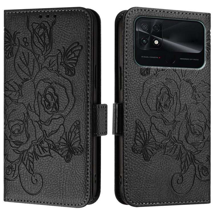 Funda de Cuero Antirrobo con Rfid En Relieve para Redmi 10C/Xiaomi Poco C40 (Negra)