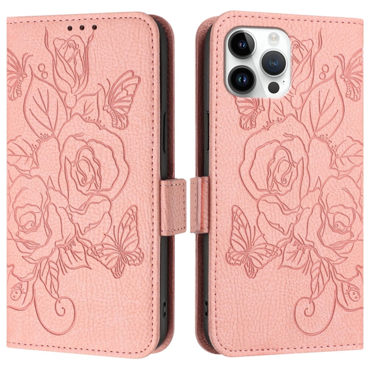 Funda de Cuero Antirrobo RFID con Relieve para iPhone 12/12 Pro (Rosa)