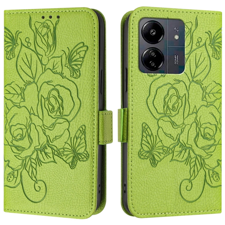 Funda de Cuero Antirrobo Rfid con Relieve Rosa para Redmi 13C 4G Global / Xiaomi Poco C65 (Verde)