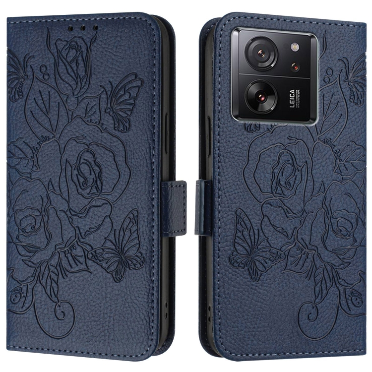 Funda de Cuero Antirrobo Rfid con Relieve Rosa para Redmi K60 Ultra / Xiaomi 13T / 13T Pro (Azul Oscuro)