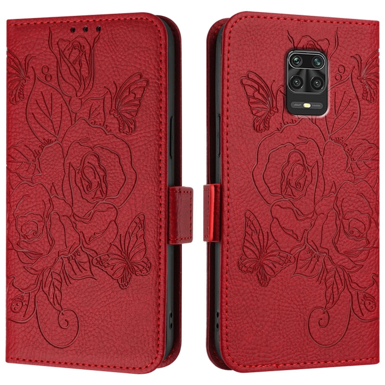 Funda de Cuero Antirrobo Rfid con Relieve Rosa para Redmi Note 10 Lite/Xiaomi Poco M2 Pro (Rojo)