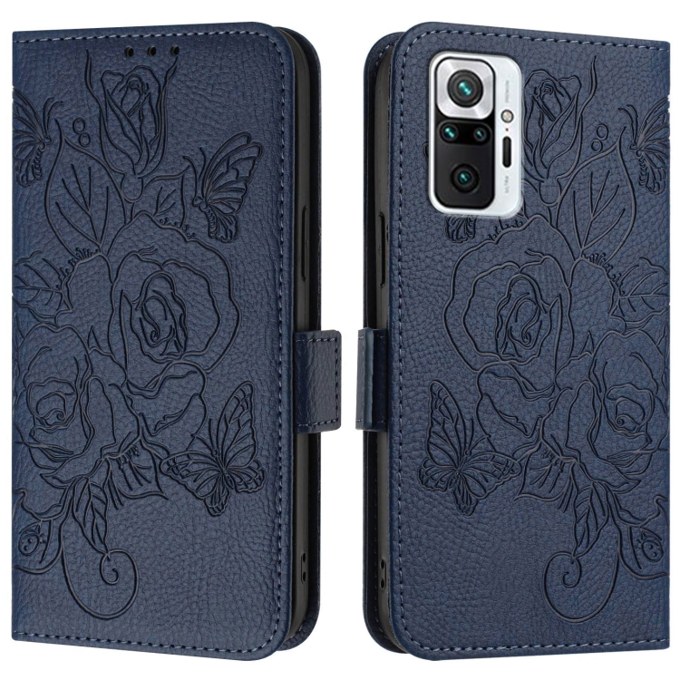 Funda de Cuero Antirrobo Rfid con Relieve Rosa para Redmi Note 10 Pro 4G/Note 10 Pro Max (Azul Oscuro)