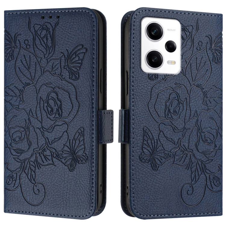 Funda de Cuero Antirrobo Rfid con Relieve Rosa para Redmi Note 12 Explorer (Azul Oscuro)
