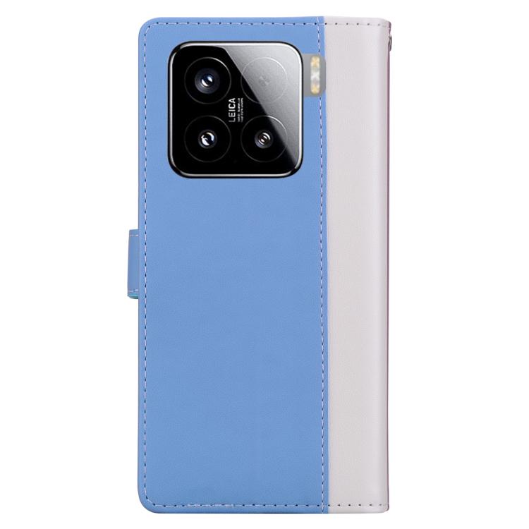 Funda de cuero bicolor con relieve para Xiaomi 15 (blanco y azul)