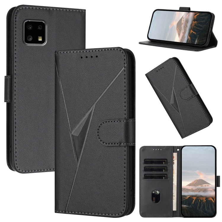 Funda de Cuero para Sharp Aquos Sense4 con Cierre de Hebilla y Diseño Triangular (Negra)
