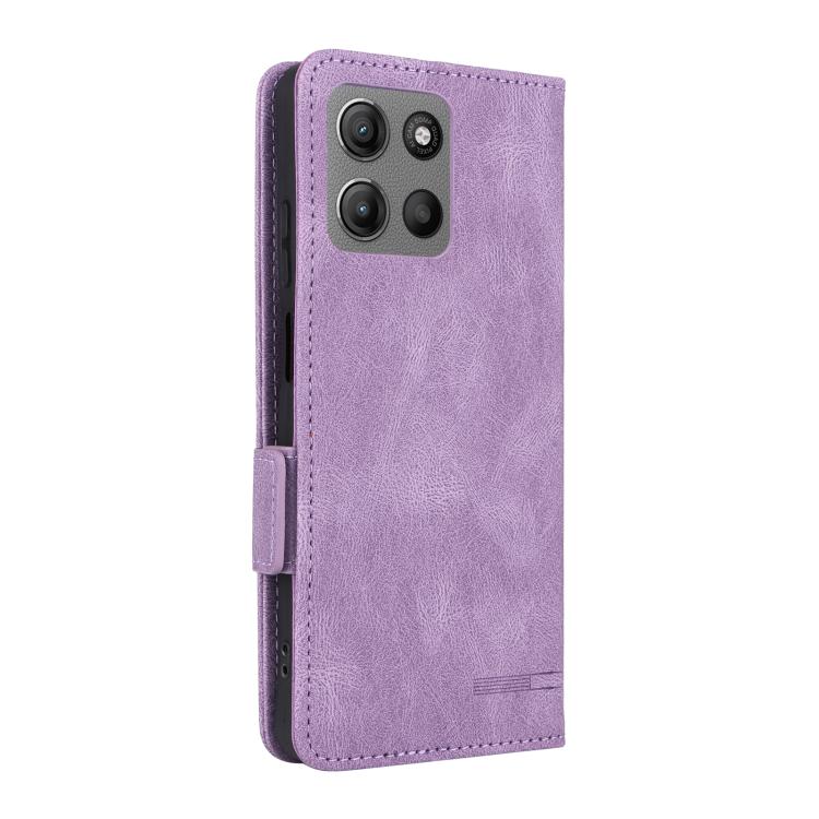 Funda de Cuero con Cierre Magnético para Motorola Moto G15 (Morado)