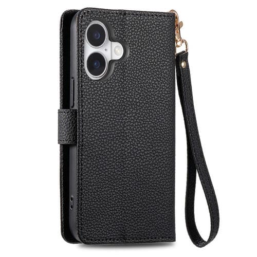 Funda de cuero con cordón y cremallera Love para iPhone 17 (negra)