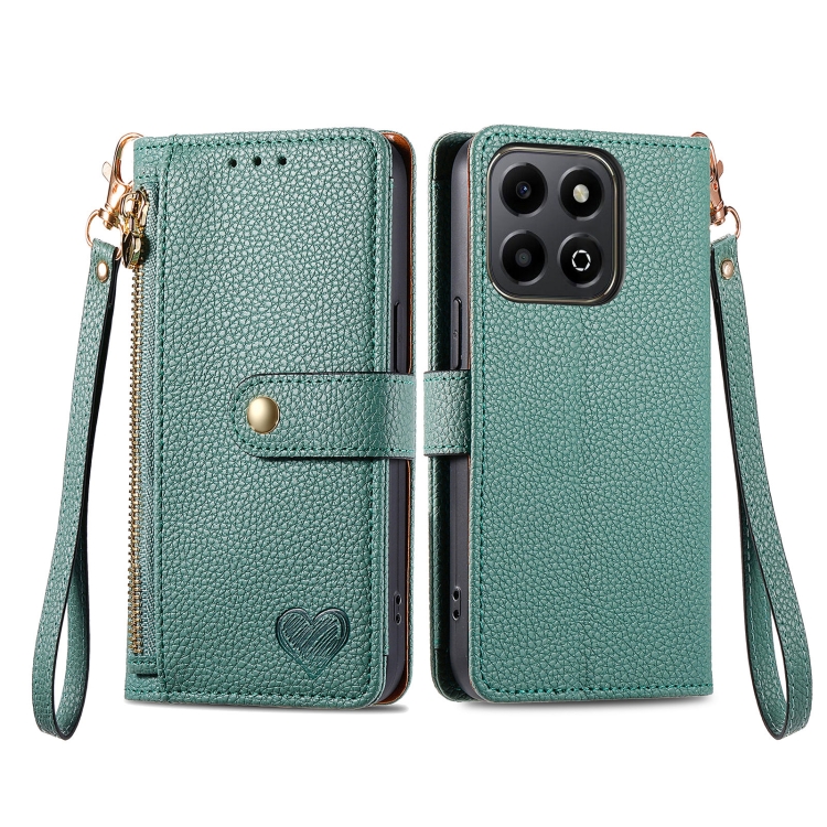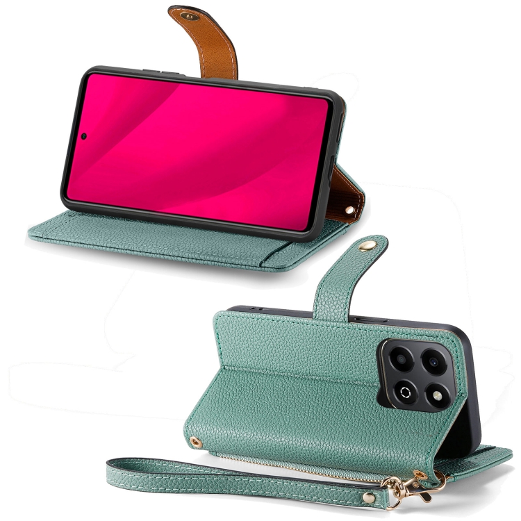 Funda de Cuero con Cordón y Cremallera para Honor 200 Smart Love (Verde)