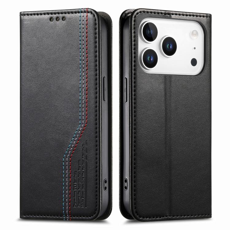 Funda de cuero con correa elástica y ventosa magnética para iPhone 17 Pro Max (negra)