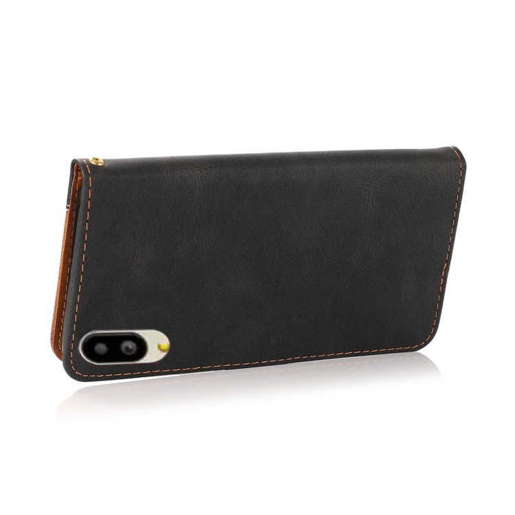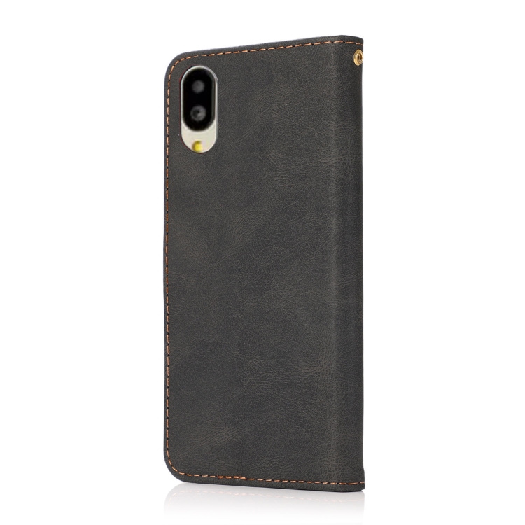 Funda de Cuero para Sharp Basio Active SHG09 con Costuras Dos Colores (Negro y Marrón)