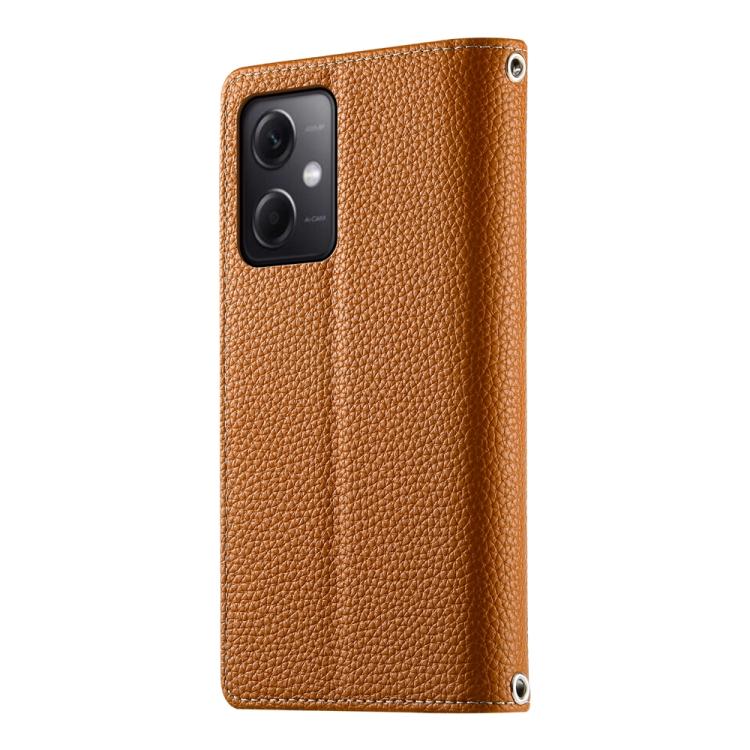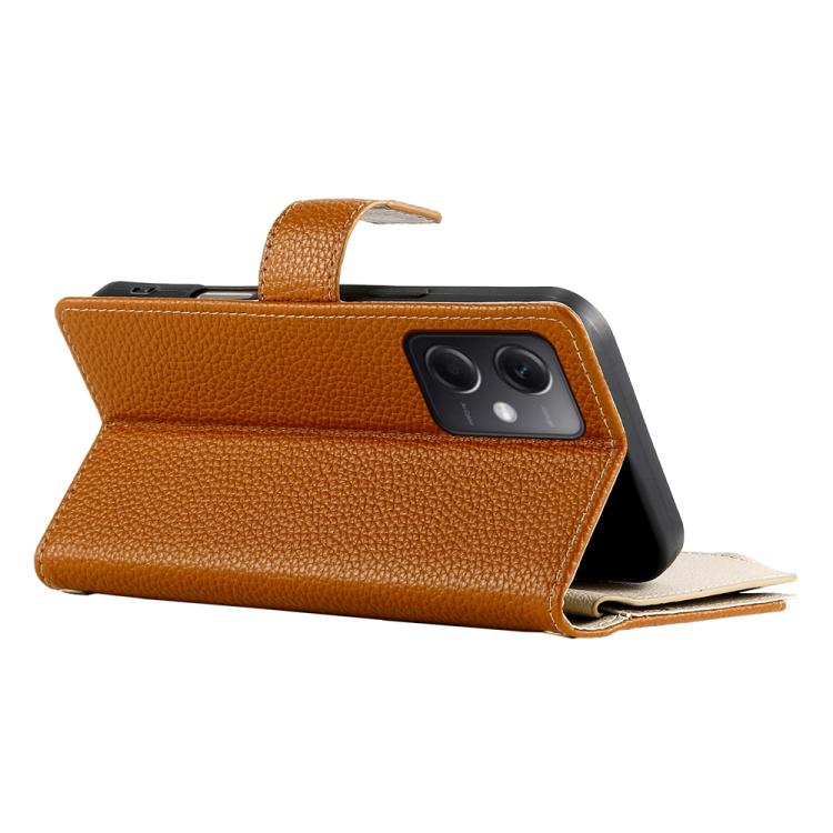 Funda de cuero con cremallera para Redmi Note 12 5G Global / Xiaomi Poco X5, con costuras, para múltiples tarjetas y correa corta (marrón)
