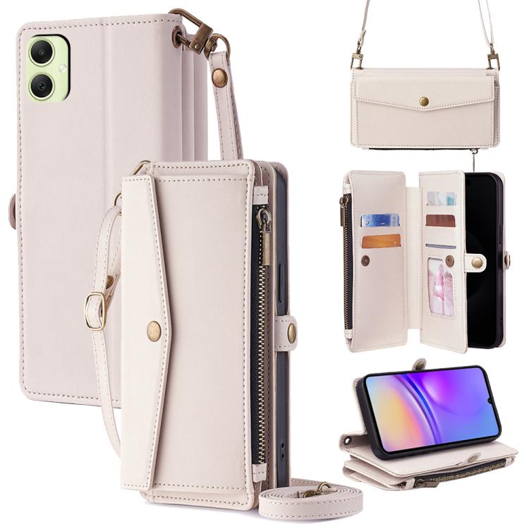Funda de cuero con cremallera y hebilla lateral para Samsung Galaxy A05 4G (blanca)