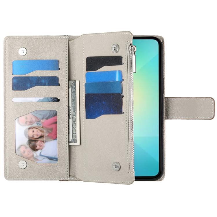 Funda de cuero con cremallera y múltiples tarjetas para Samsung Galaxy A06 4G / 5G / A07 4G, con costuras y correa corta (marrón)