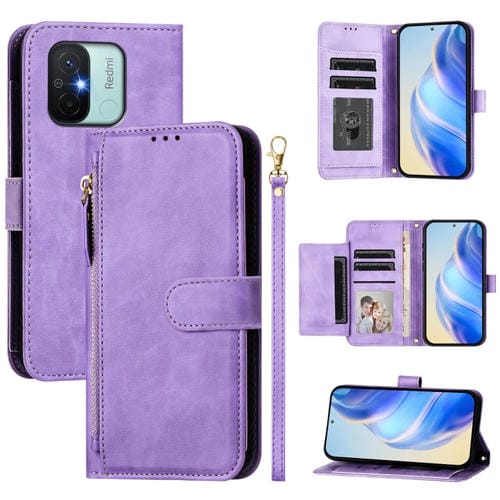 Funda de Cuero con Cremallera y Ranuras para Varias Tarjetas para Redmi 12C/11A (Morado)