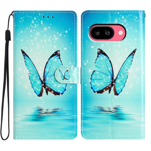 Funda de Cuero para Google Pixel 9A con Dibujo de Colores (Mariposa Azul)