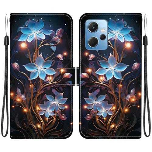 Funda de Cuero con Dibujo de Colores y Textura de Cristal Global para Redmi Note 12 4G (Flor de Linterna Pequeña)
