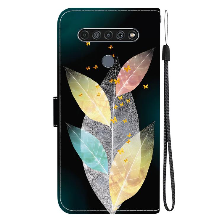 Funda de Cuero para LG K61 con Dibujo de Colores y Textura de Cristal (Hojas de Colores)