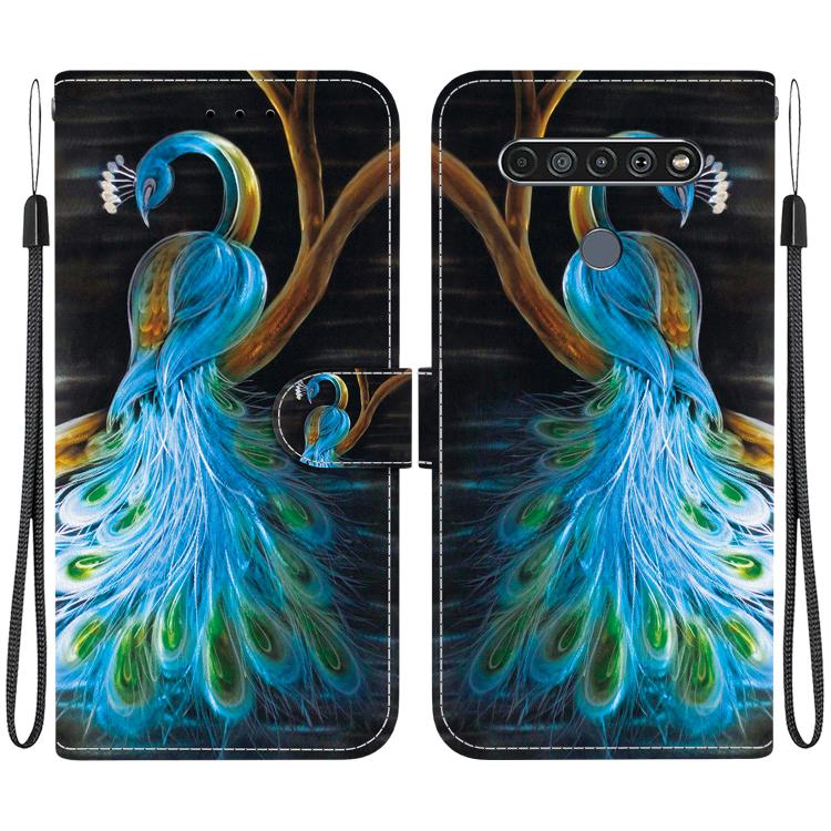 Funda de Cuero LG K61 con Dibujo de Colores y Textura de Cristal (Pavo Real)