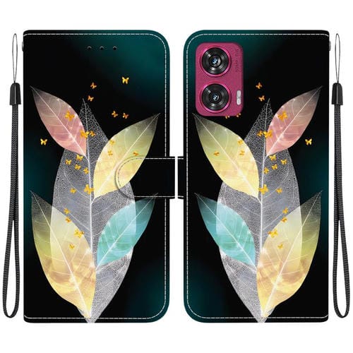 Funda de Cuero para Motorola Edge 50 Fusion con Dibujo y Textura de Cristal (Hojas de Colores)
