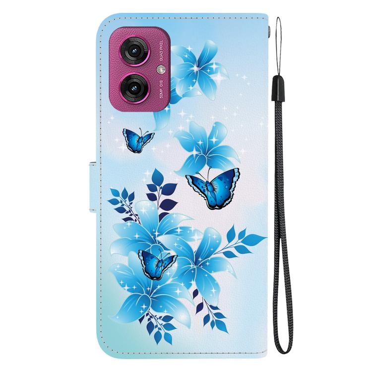 Funda de Cuero con Dibujo y Textura de Cristal para Motorola Moto G55 (Mariposas Azules)
