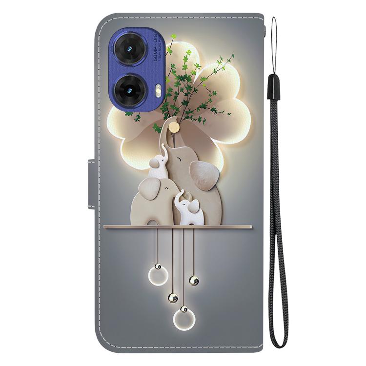 Funda de Cuero Motorola Moto G85 con Dibujo de Colores y Textura de Cristal (Elefantes)