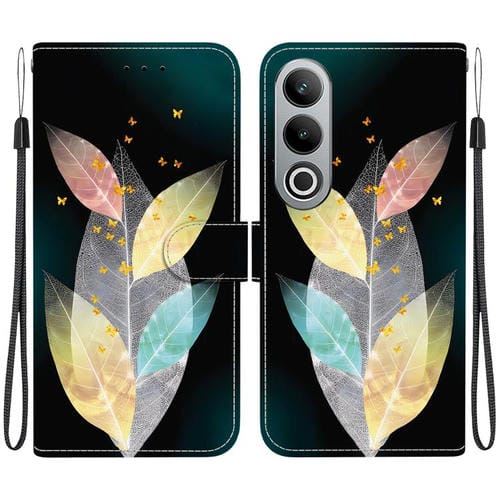 Funda de Cuero con Dibujo y Textura de Cristal para OnePlus Nord Ce4 5G (Hojas de Colores)