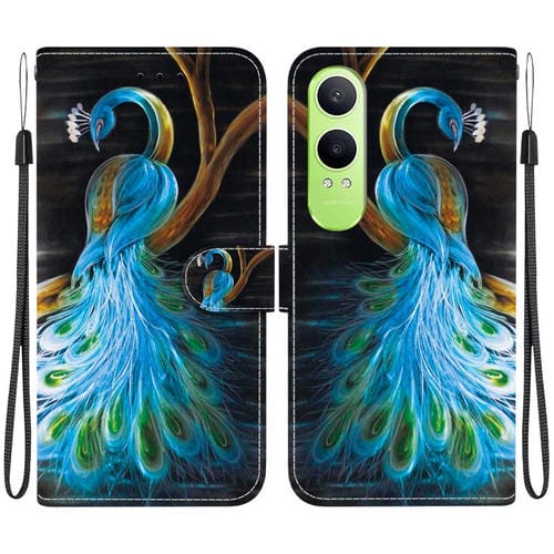 Funda de Cuero OnePlus Nord Ce4 Lite con Dibujo de Colores y Textura de Cristal (Pavo Real)