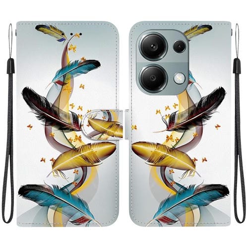 Funda de Cuero con Dibujo de Colores y Textura de Cristal para Redmi Note 13 Pro 4G / Poco M6 Pro (Plumas de Mariposa Doradas)