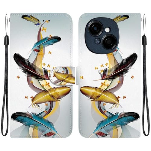 Funda de Cuero para Tecno Spark Go 1 Pop 9 Pro con Dibujo de Colores y Textura de Cristal (Plumas de Mariposa Doradas)