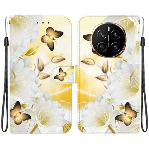 Funda de Cuero Honor Magic7 con Dibujo de Colores y Textura de Cristal (Mariposa Dorada Epiphyllum)