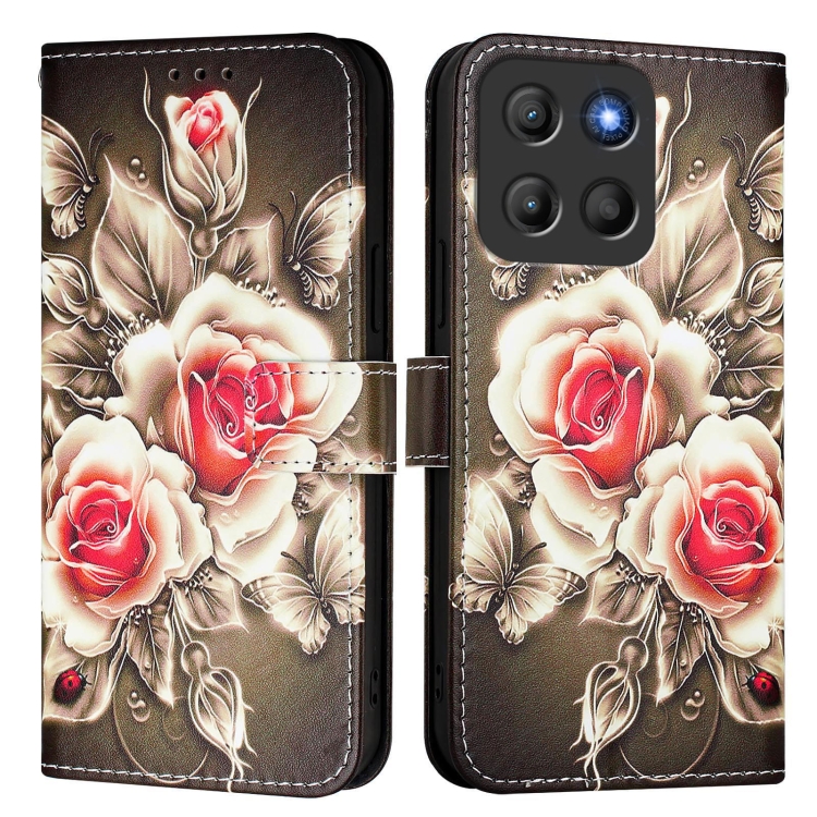 Funda de Cuero Motorola Moto G15 con Diseño de Dibujos (Rosas sobre Negro)