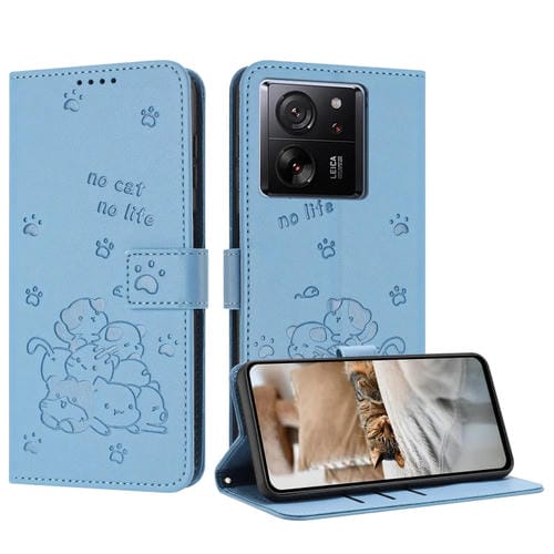 Funda de Piel con Diseño de Gatito En Relieve y Cordón para Redmi K60 Ultra (Azul)
