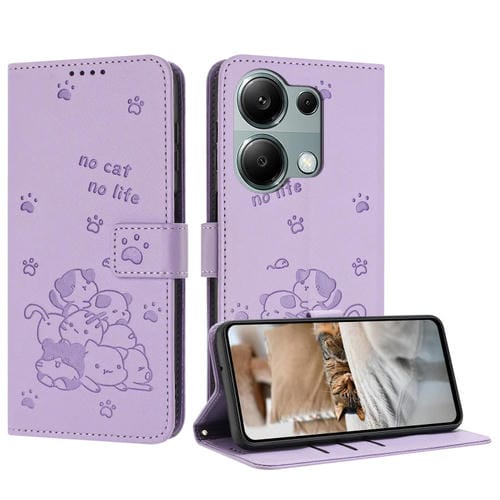 Funda de Cuero con Estampado de Gatito y Cordón para Redmi Note 13 Pro 4G (Morado)