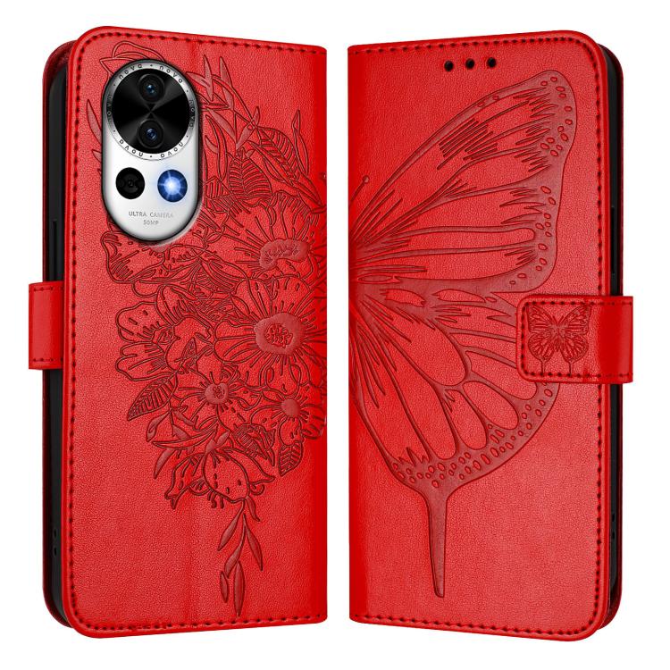 Funda de Cuero Huawei Nova 13/Nova 12 con Diseño Mariposa en Relieve (Roja)