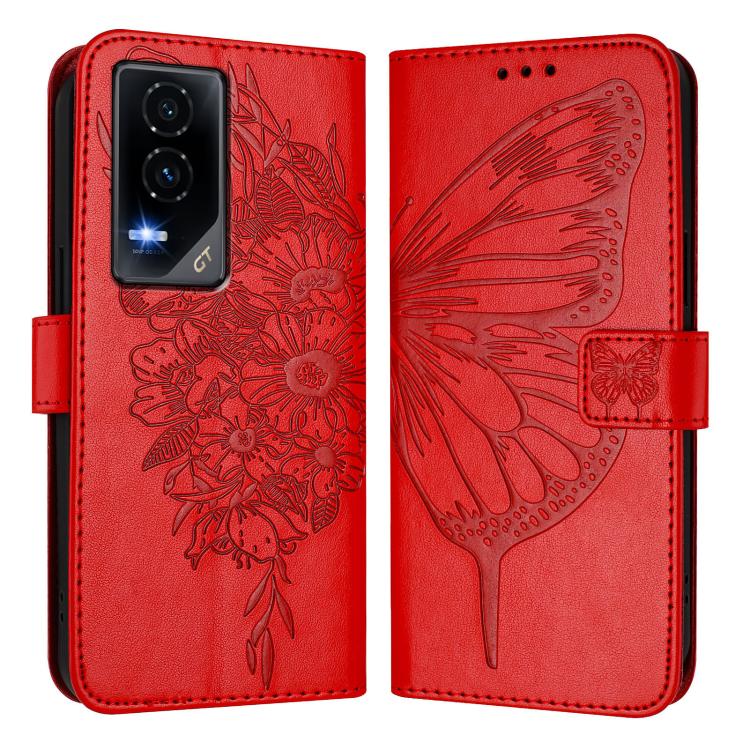 Funda de Cuero para Teléfono Honor GT con Mariposa en Relieve (Roja)