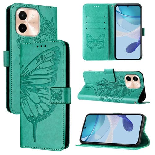 Funda de Cuero con Diseño de Mariposa En Relieve para Vivo Y28 4G (Verde)