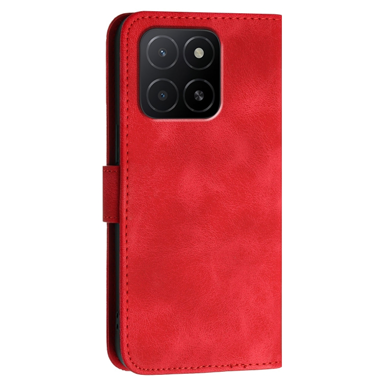 Funda de Cuero para Honor X5B y X5B Plus con Diseño de Mariposa en Relieve y Cordón (Rojo)