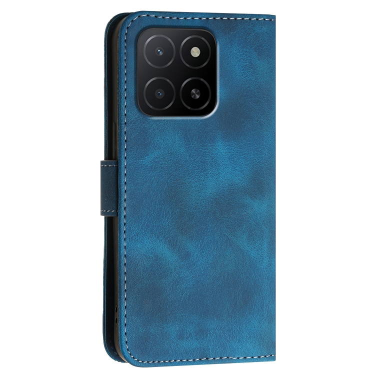 Funda de Cuero para Honor X5B/X5B Plus con Mariposas en Relieve y Cuadrícula (Azul Oscuro)