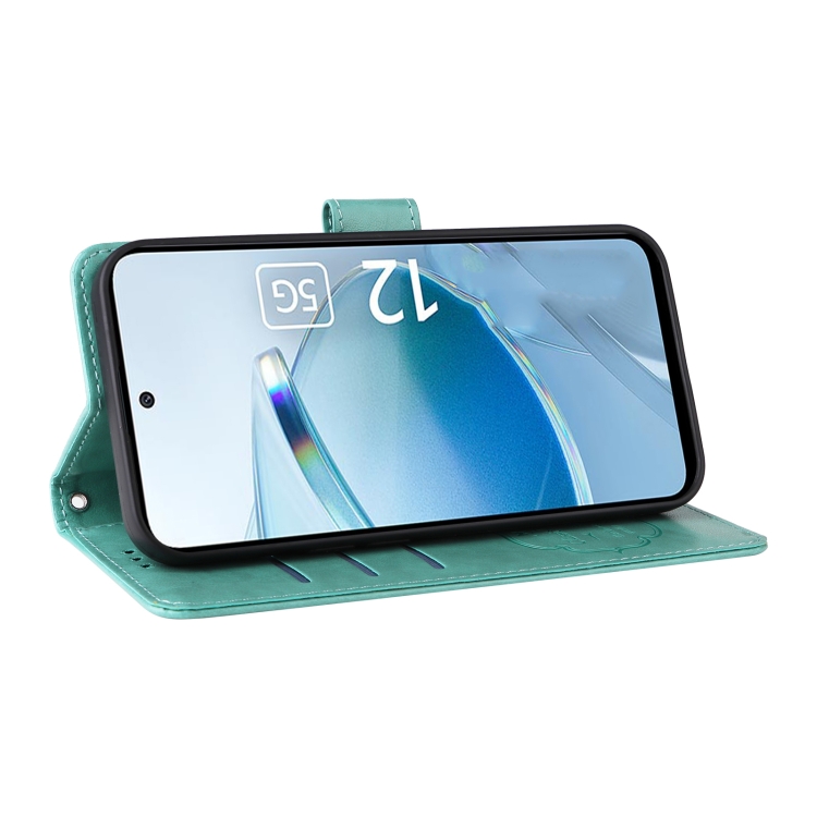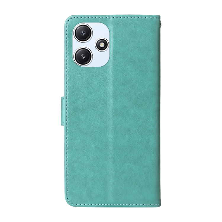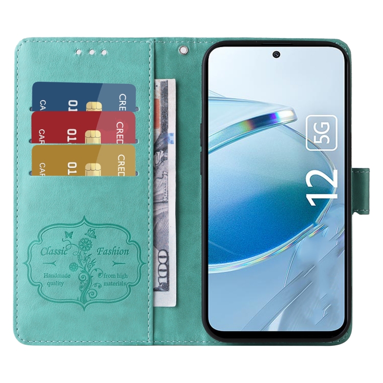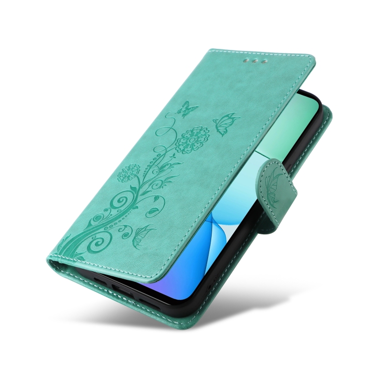 Funda de Cuero con Diseño de Mariposas y Flores En Relieve para Redmi 12 5G/4G/Note 12R (Verde)