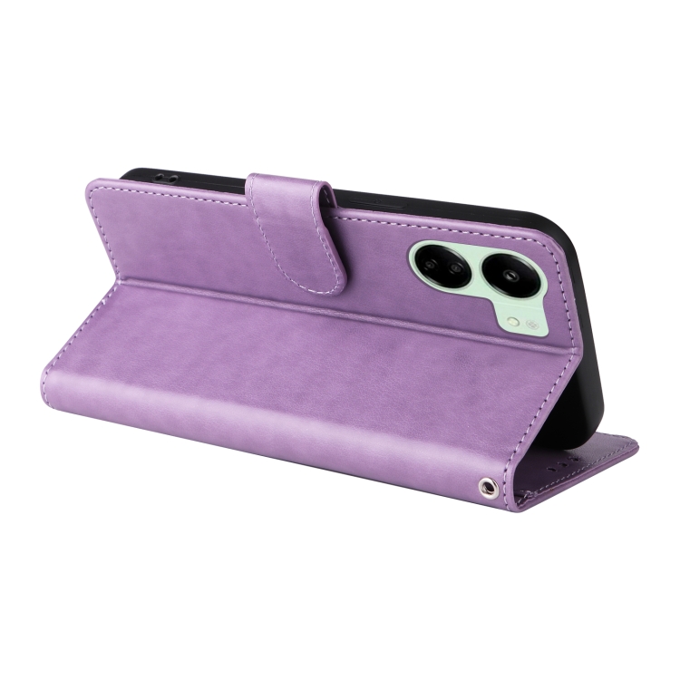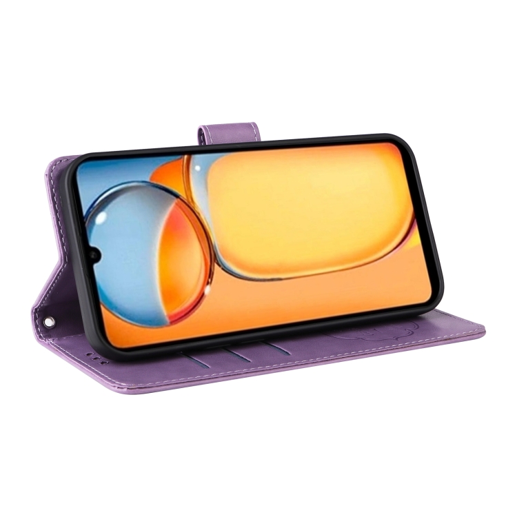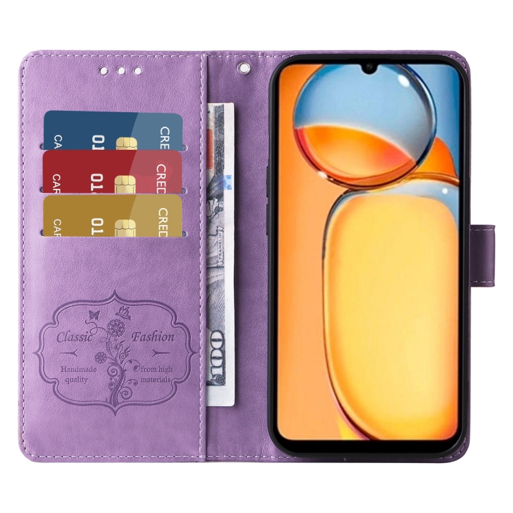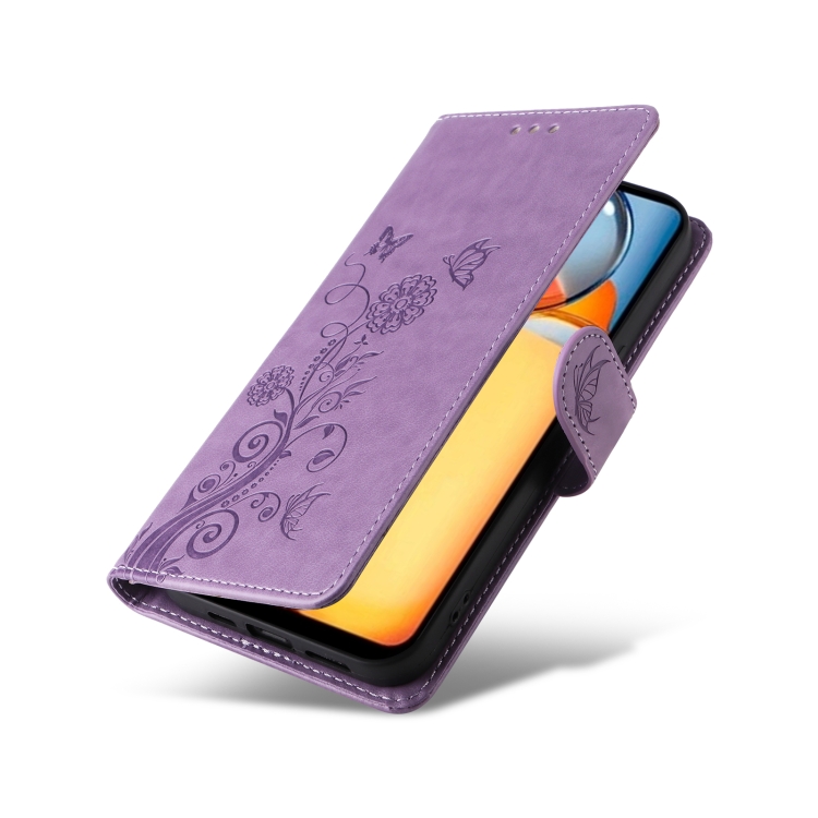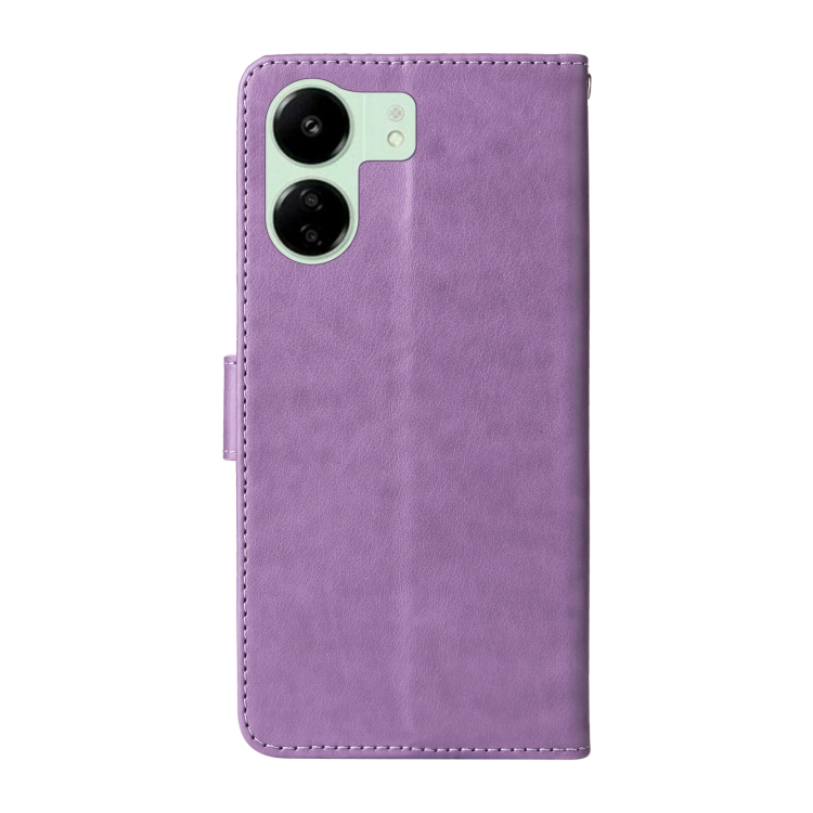 Funda de Cuero con Diseño de Mariposas y Flores En Relieve para Redmi 13C 5G/4G/13R (Morado)