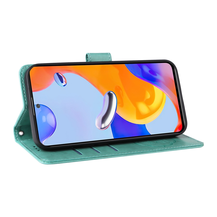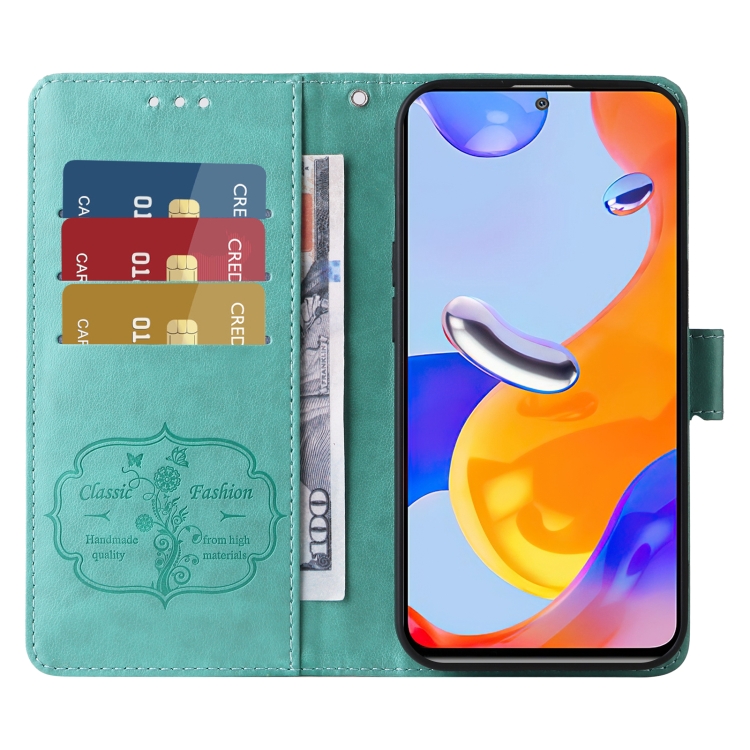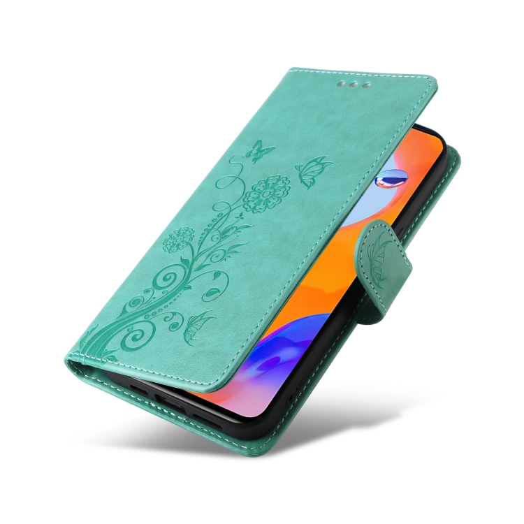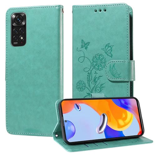 Funda de Cuero con Diseño de Mariposas y Flores En Relieve para Redmi Note 11 4G/Note 11S (Verde)