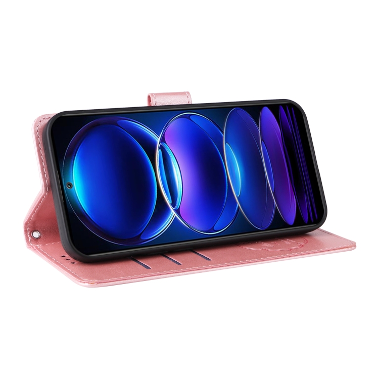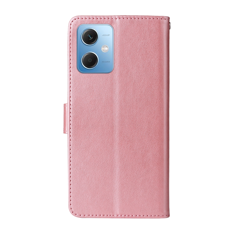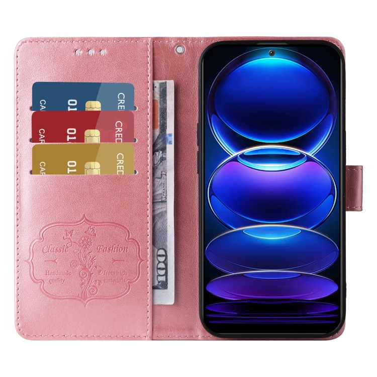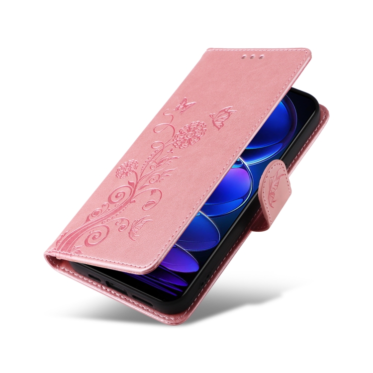 Funda de Cuero con Diseño de Mariposas y Flores En Relieve para Redmi Note 12 5G (Oro Rosa)