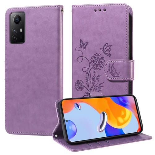 Funda de Cuero con Diseño de Mariposas y Flores En Relieve para Redmi Note 12S 4G (Morado)