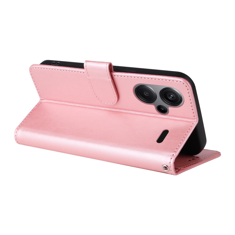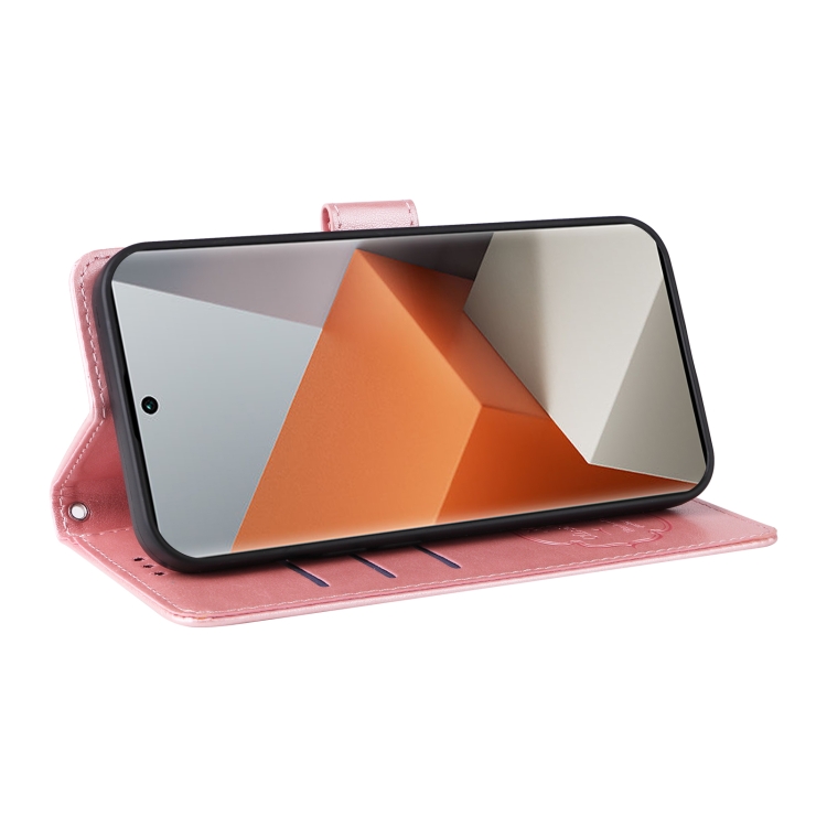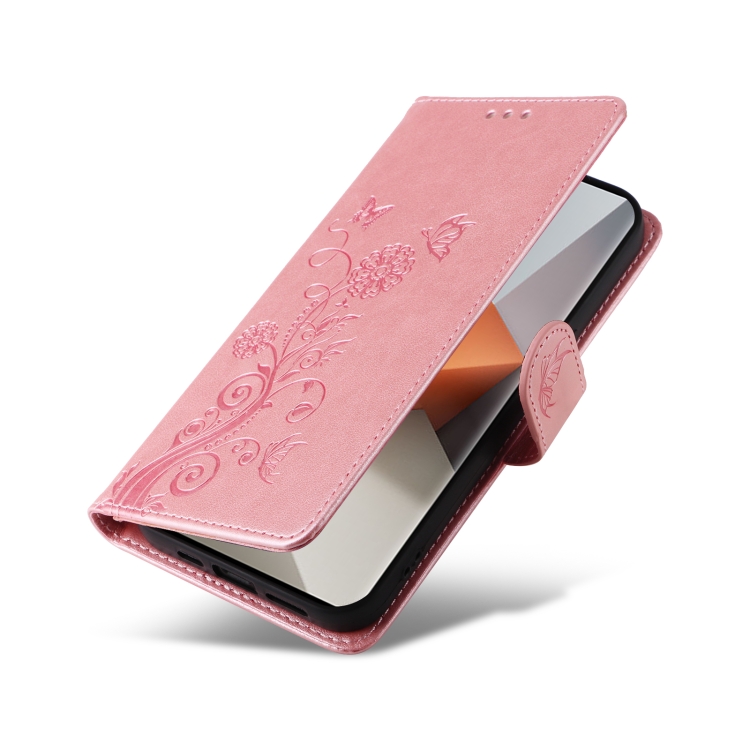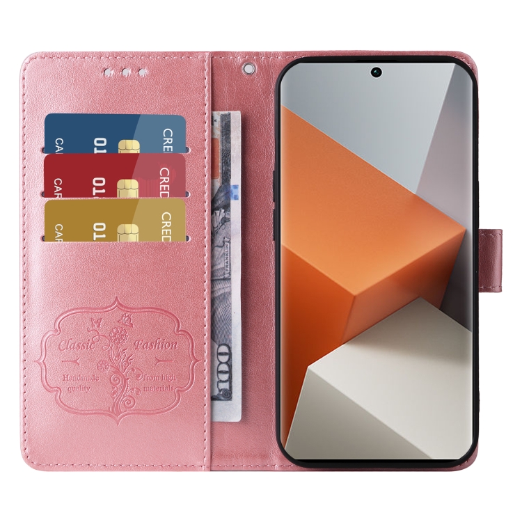 Funda de Cuero con Diseño de Mariposas y Flores En Relieve para Redmi Note 13 Pro+ 5G (Oro Rosa)