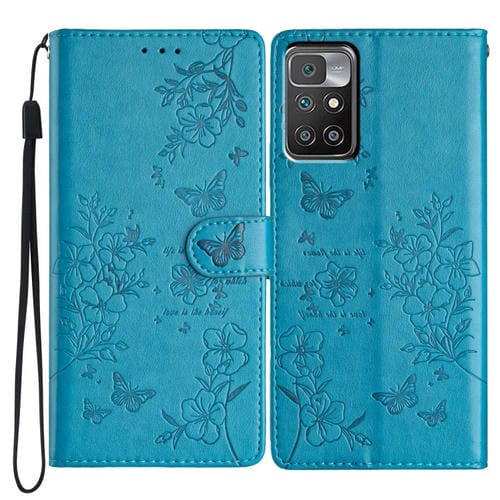 Funda de Cuero con Diseño de Mariposas y Flores para Redmi 10 2022 (Azul)