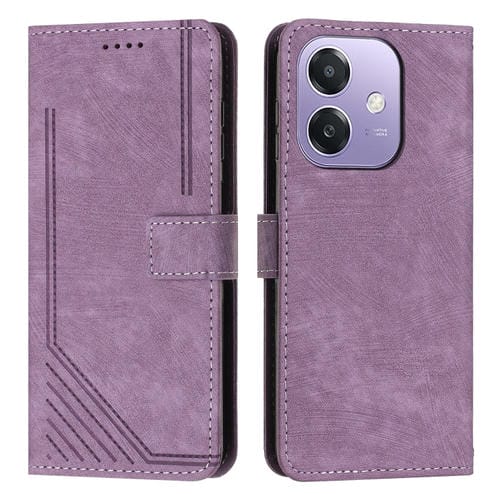 Funda de Cuero con Diseño de Rayas y Tacto Sedoso para Oppo A3X (Morado)