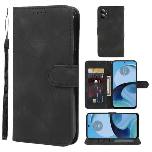 Funda de Cuero para Motorola Moto G14 con Diseño Geométrico y Líneas (Negro)