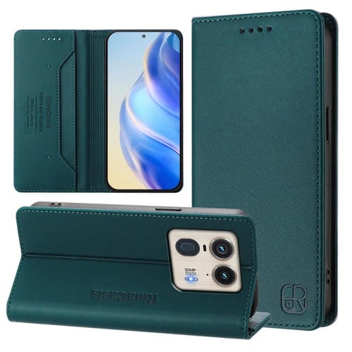 Funda de Cuero con Doble Pliegue y Succión Magnética para Motorola Edge 50 Ultra/X50 Ultra Rc01 (Verde Oscuro)