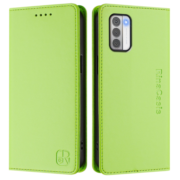 Funda de Cuero Nokia G42/G310 Rc01 con Doble Pliegue y Succión Magnética (Verde Hierba)